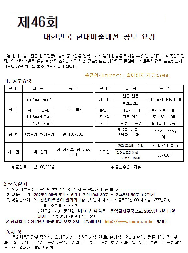 Á¦46ȸ Çö´ë¹Ì¼ú´ëÀü Á¢¼ö¾È³»(2025...
